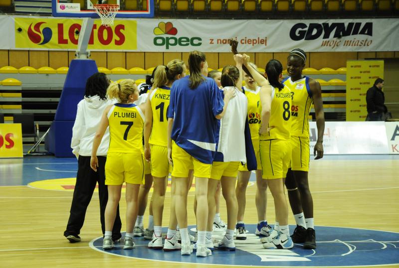 1 Luty 2012; Drużyna Lotos Gdynia. Mecz czternastej kolejki Euroligi Kobiet 2011/2012 - Lotos Gdynia v ZVVZ USK Prague. HSW Gdynia. Fot. Tomasz Żuber / GrFoto.org *** Local Caption *** 1 February 2012; Lotos Gdynia team after the final whistle. EuroLeague Women 2011/2012, Round 14 - Lotos Gdynia v ZVVZ USK Prague. HSW Gdynia. Picture credit: Tomasz Żuber / GrFoto.org