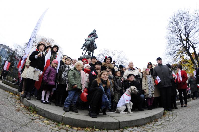 11 Listopad 2012; Parada Niepodległości w Gdańsku. Tegorocznym patronem parady był Admirał Arendt Dickmann, dowódca polskiej floty biorącej udział w bitwie pod Oliwą, na galeonie "Święty Jerzy". W czasie bitwy, 28 listopada 1627, będąc na pokładzie zdobytego już szwedzkiego galeonu "Tigern", poniósł śmierć na skutek trafienia przypadkową kulą artyleryjską w nogi. Trumnie towarzyszyła kompania honorowa piechoty morskiej, królewscy komisarze i rada miasta. Gdańsk. Fot. Tomasz Żuber / GrFoto.org *** Local Caption *** 11 November 2012; The Independance day parade in Gdańsk. This year parade had a Patron of Admiral Arendt Dickmann, he commanded the Polish fleet during its only major encounter with the Swedish fleet at the Battle of Oliwa on 28 November 1627. In this action the Poles captured the Swedish galleon Tigern and forced the crew of another, the Solen, to scuttle their vessel. Dickmann, now aboard the captured Tigern, was killed when a cannonball, possibly fired from galleon Pelikanen, smashed his legs. His funeral, with full honours, took place at the Marienkirche in Danzig on 2 December. Danzig. Picture credit: Tomasz Żuber / GrFoto.org